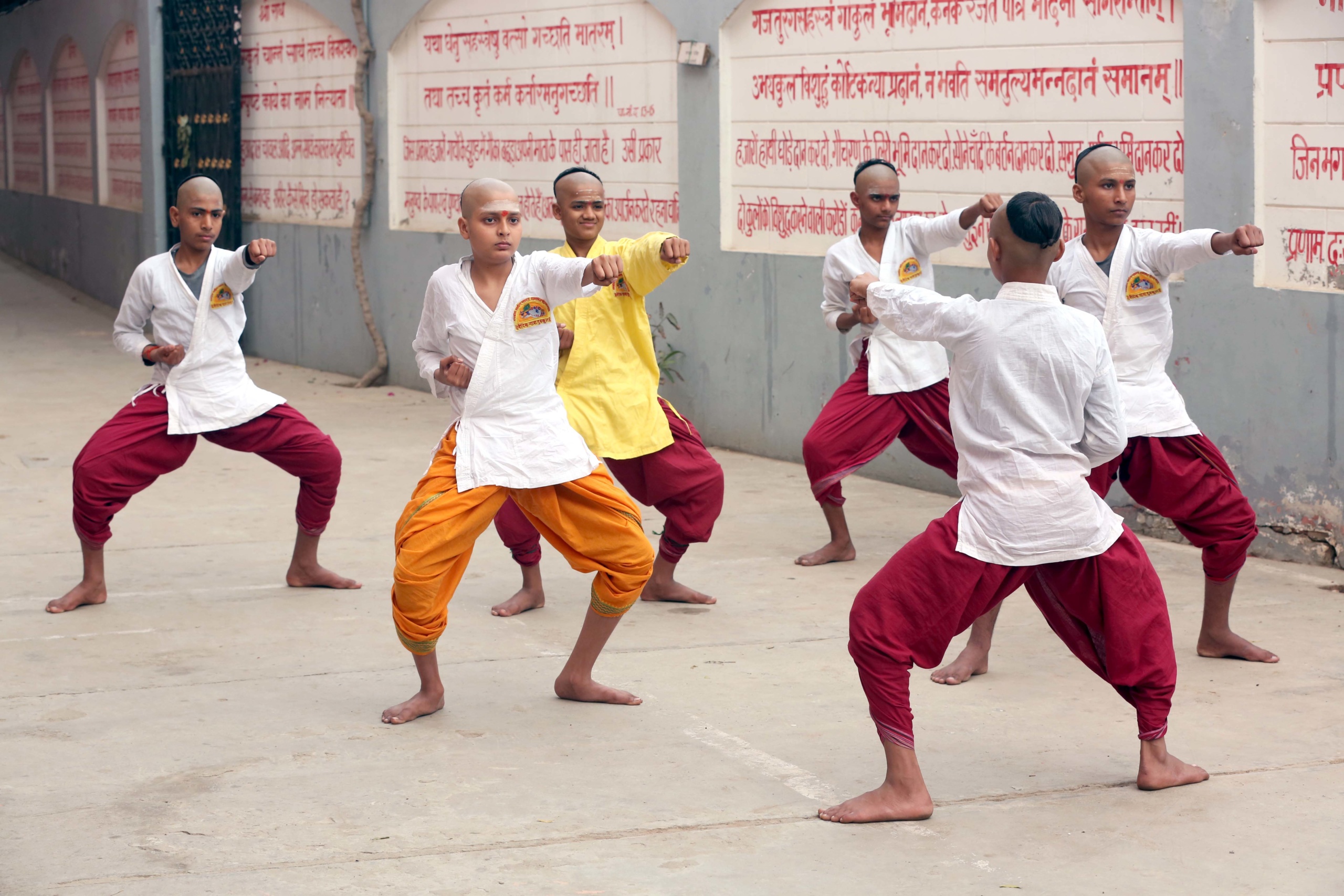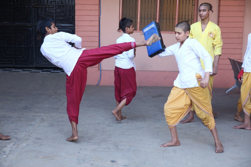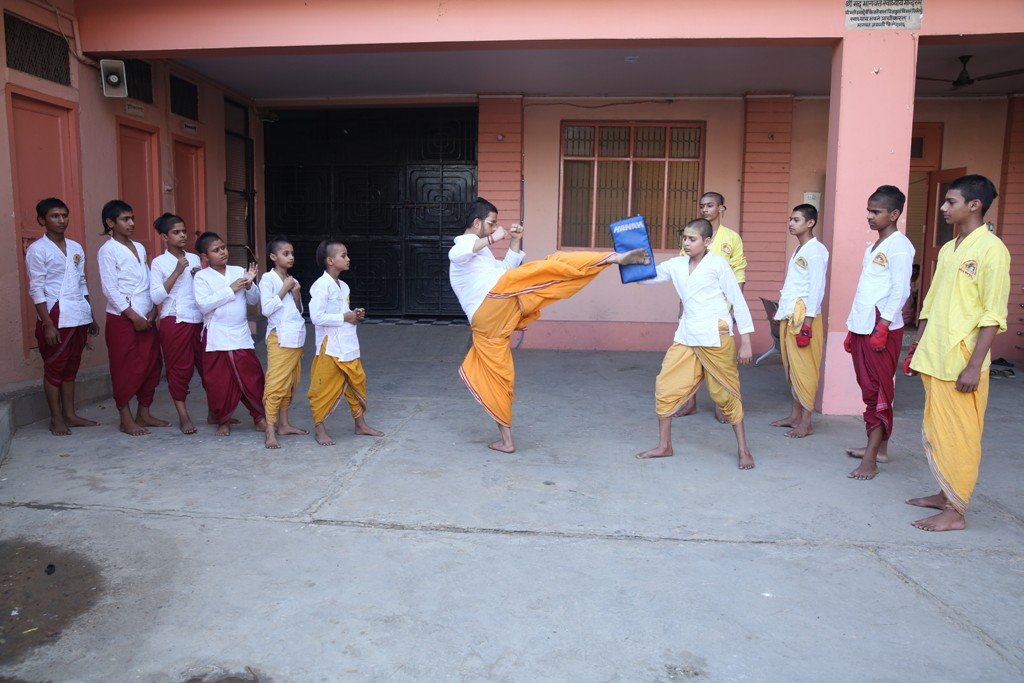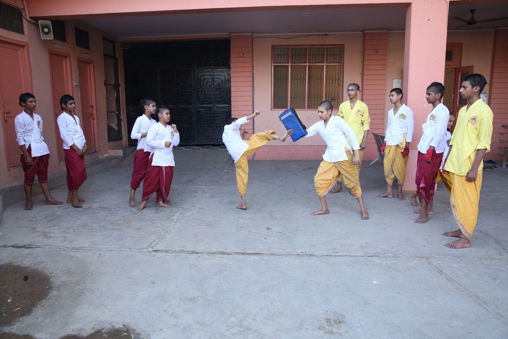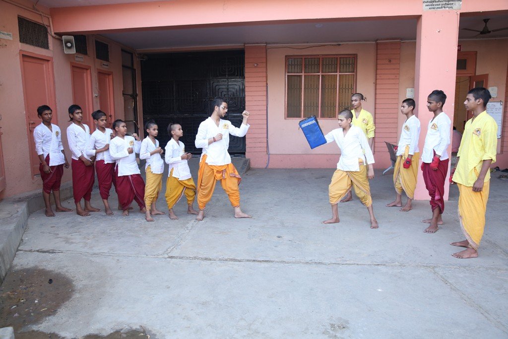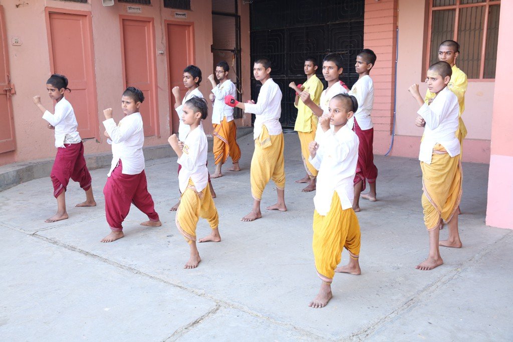 कराटे का प्रशिक्षण लेते ऋषिकुमार – वैदिक यात्रा गुरुकुल, वृन्दावन