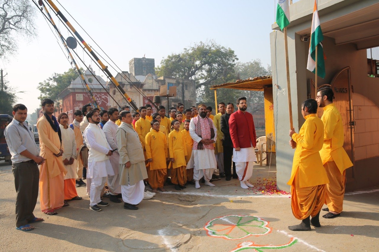 २६ जनवरी के पावन पर्व पर वैदिक यात्रा गुरूकुल (श्रीमद्भागवत विद्यालय),वृन्दावन में ध्वजारोपण