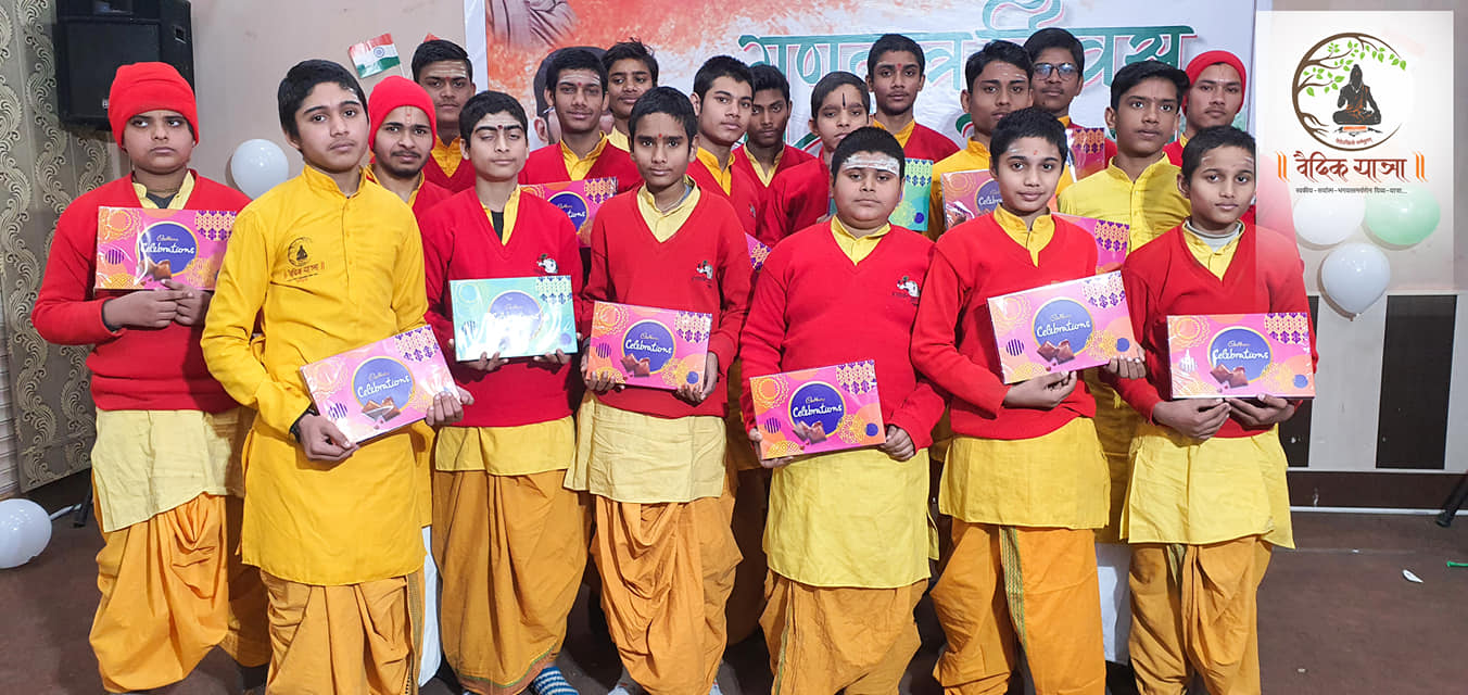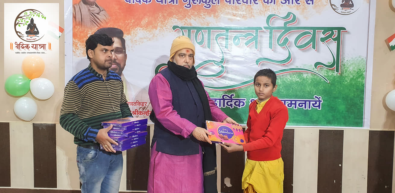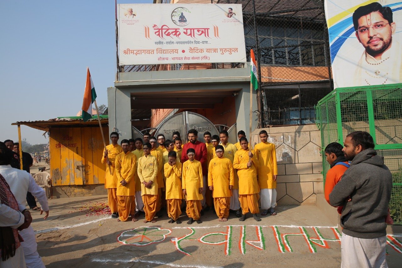 वैदिक यात्रा गुरूकुल ( श्रीमद्भागवत विद्यालय ) में मनाया गया गणतंत्र दिवस …
