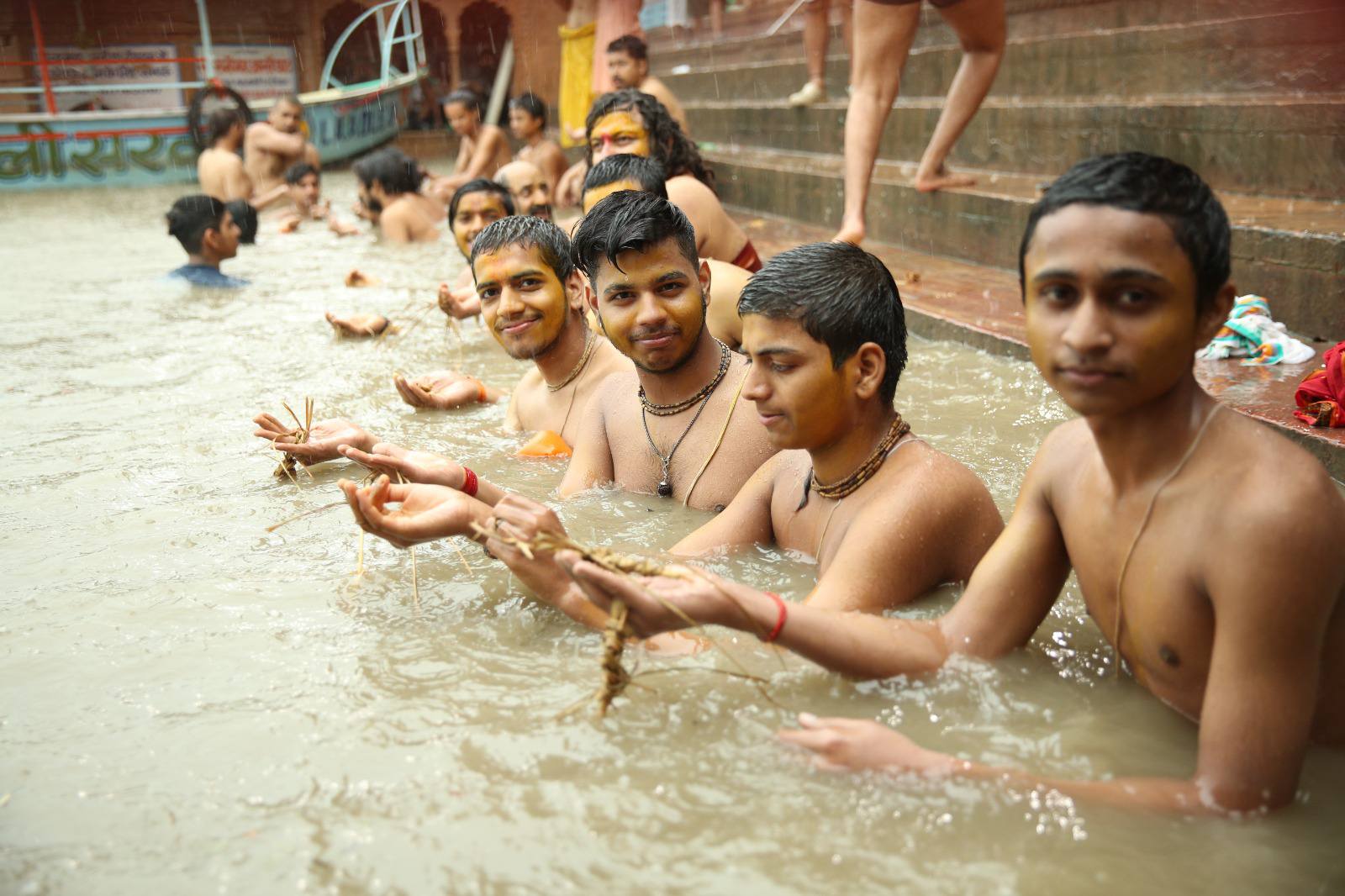 श्रावण शुक्ल पूर्णिमा पर श्रावणी उपाकर्म करते वैदिक यात्रा गुरुकुल के ऋषिकुमार