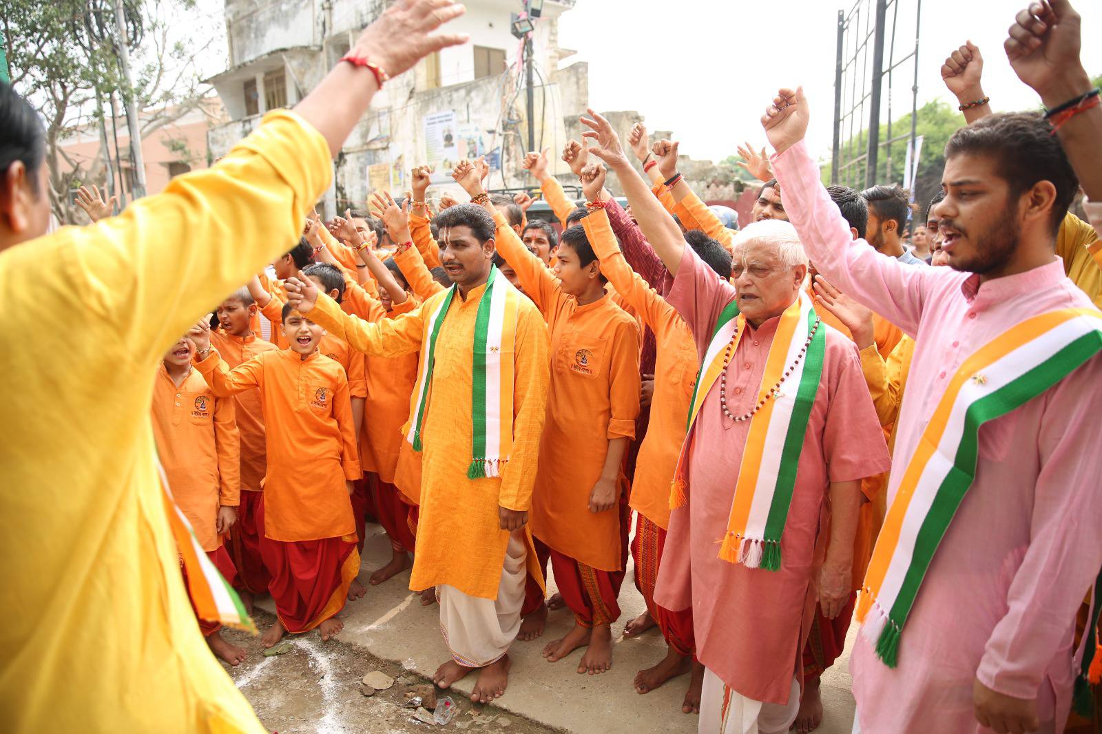 15 अगस्त के पावन पर्व पर वैदिक यात्रा गुरूकुल (श्रीमद्भागवत विद्यालय),वृन्दावन में ध्वजारोपण